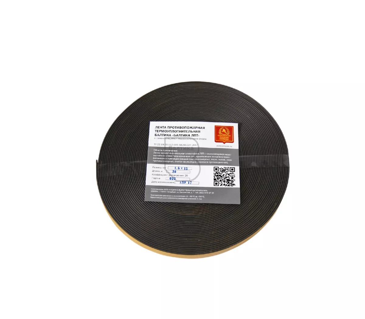 Лента противопожарная термоуплотнительная «БАЛТИКА ЛПТ» с самоклеящимся морозостойким слоем предназначена для герметизации зазоров в противопожарных преградах (дверей противопожарных, ворот, люков, окон противопожарных, систем вентиляции, клапанов противодымных).